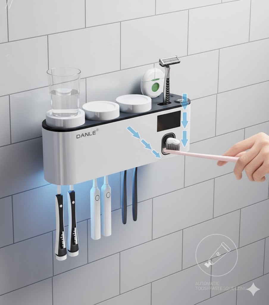 A Hole Free Wall Mounted Automatic Toothpaste Dispenser, A Toothpaste Storage Rack for Bathrooms, Households, and Bathrooms