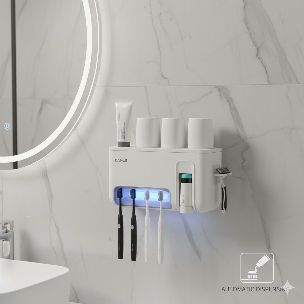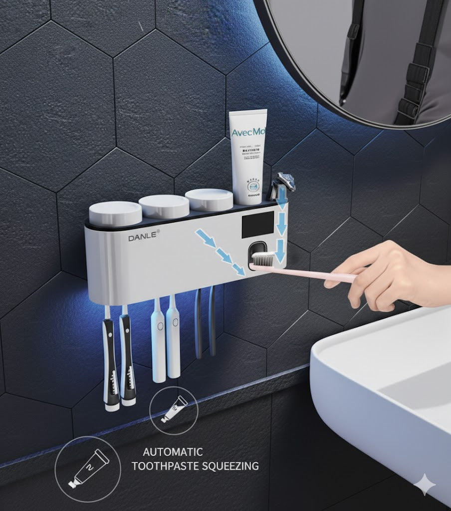 A Hole Free Wall Mounted Automatic Toothpaste Dispenser, A Toothpaste Storage Rack for Bathrooms, Households, and Bathrooms